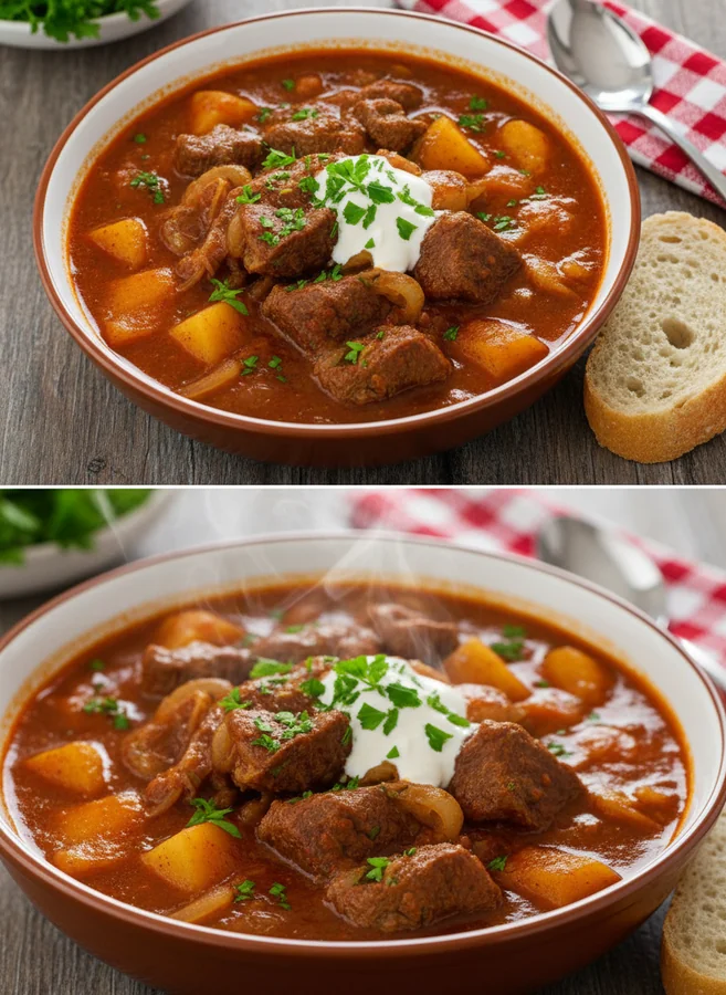 Traditionelles Gulasch Rezept für 4-6 Personen Einführung: Gulasch – ein Gericht, das nicht nur in der ungarischen Küche verwurzelt ist, sondern auch in vielen anderen Ländern eine ganz eigene Note