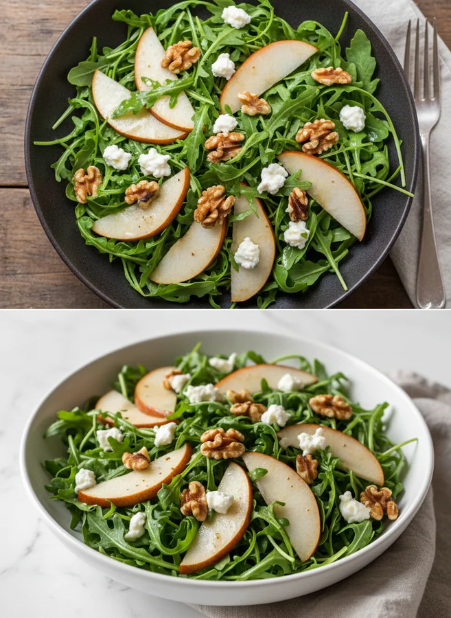 Einführung: Rucolasalat mit Birne, Ziegenkäse und Walnüssen ist mehr als nur ein einfacher Salat – er ist eine harmonische Kombination aus frischen, knackigen und cremigen Texturen, die sowohl das Auge