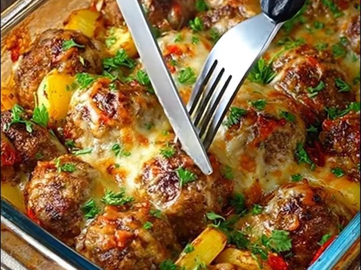 Einführung Ofenfleischbällchen mit Käse und Kartoffeln sind ein wahres Fest der Sinne – warm, würzig und der Inbegriff von Comfort Food. Wenn der Duft von knusprigem Käse und frisch gebackenem