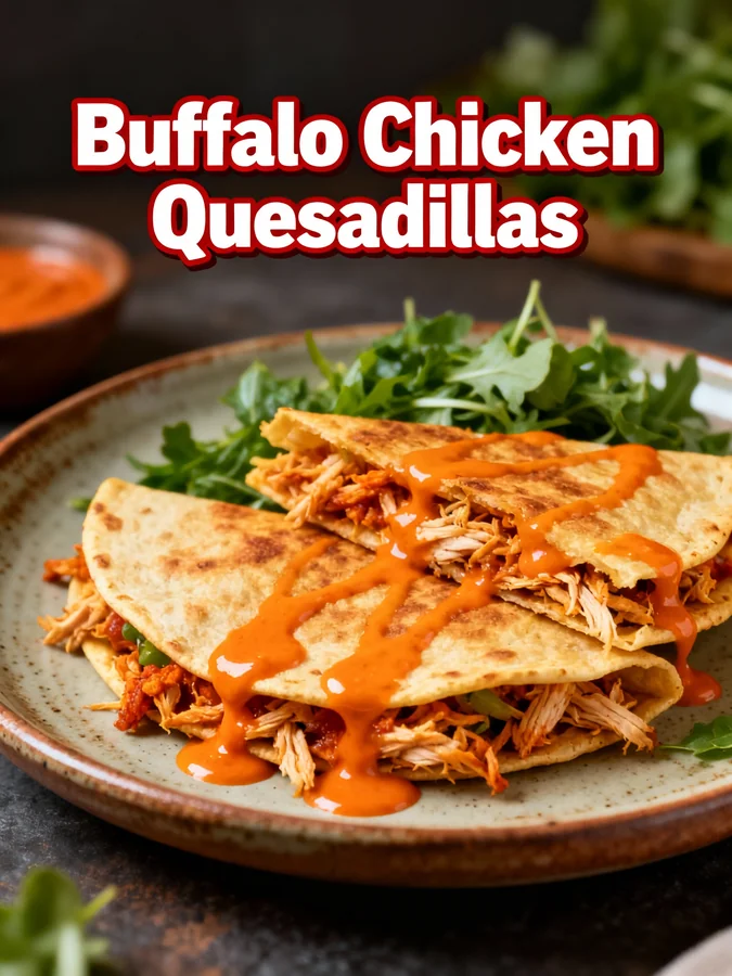 - Step 6: Cut quesadillas into wedges and serve hot with ranch or blue cheese dressing and extra buffalo sauce.