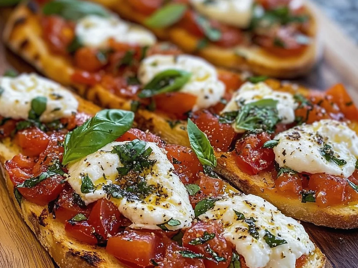 A2: To create a vegan version, you can substitute the burrata with a plant-based cheese alternative or a cashew cream. Just ensure that all other ingredients, like the bread and olive oil, are vegan-friendly.
