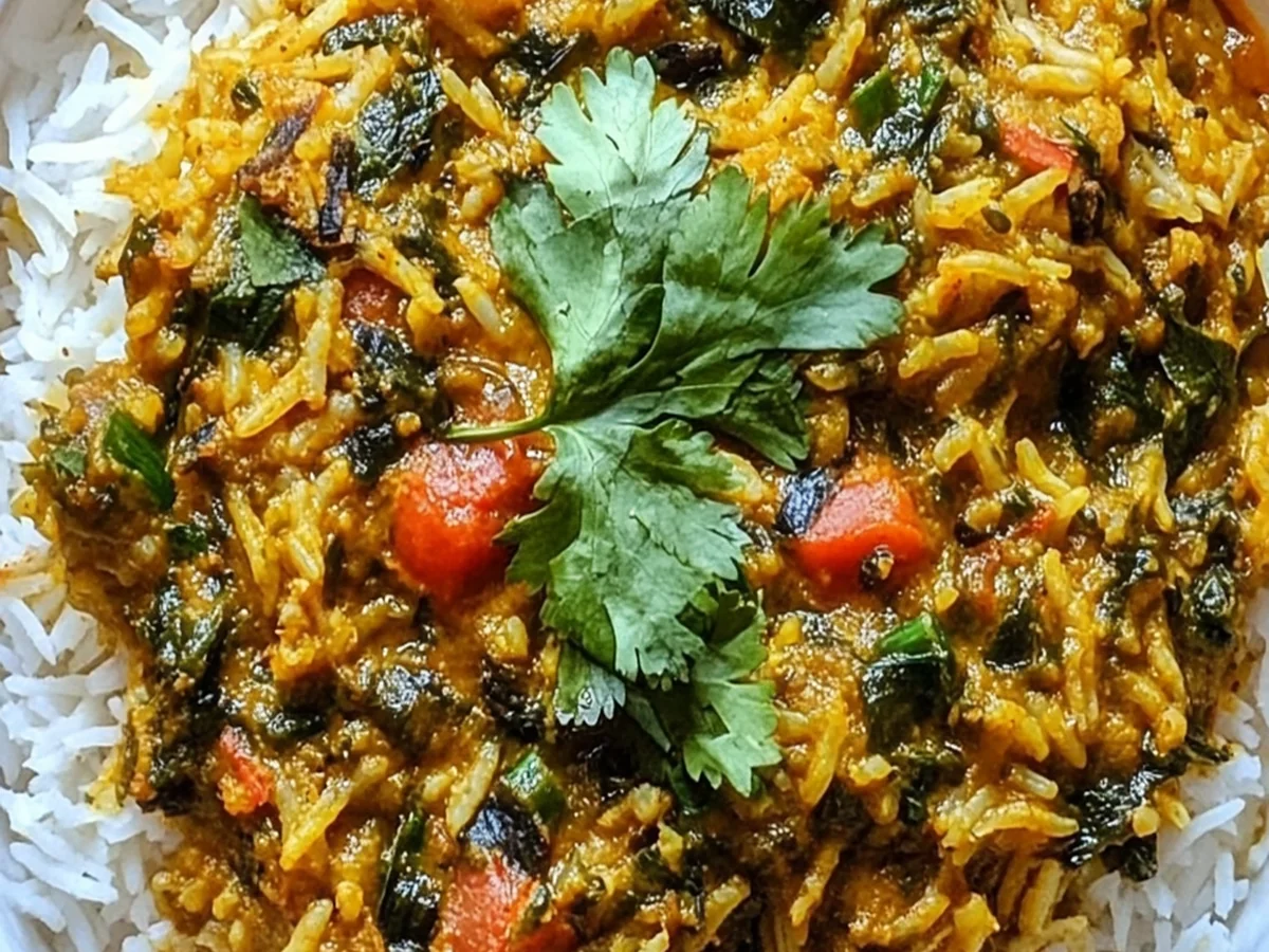 Coconut milk, while creamy and indulgent, contains medium-chain triglycerides (MCTs) that can provide quick energy and support metabolic health. Additionally, the combination of rice and greens offers a balanced meal that includes carbohydrates, protein, and essential nutrients. This dish can be a wholesome option for those looking to incorporate more plant-based meals into their diet.