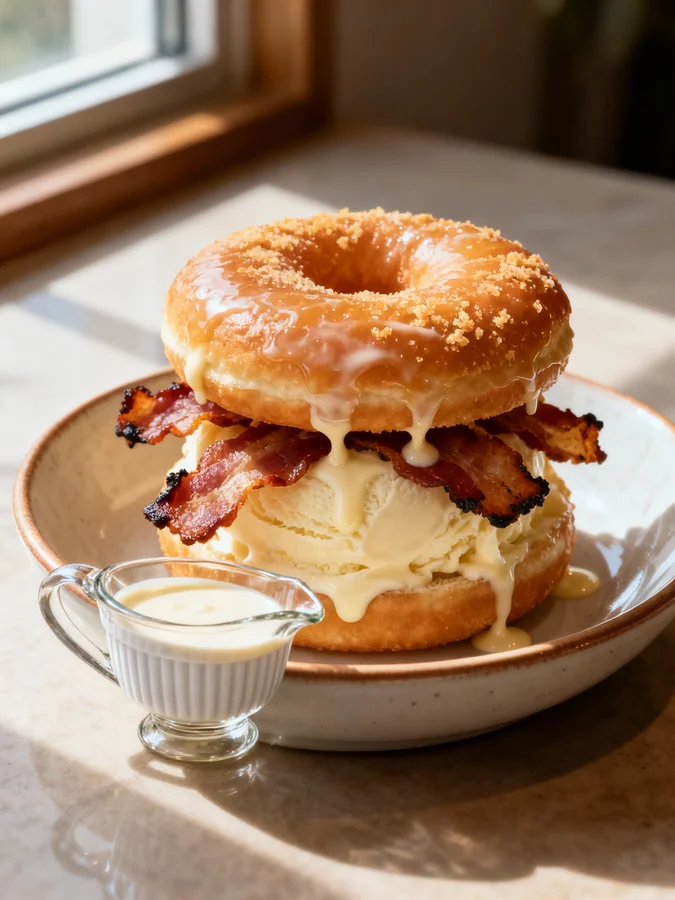 The Bacon Donut Ice Cream Burger Imagine a deliciously decadent creation where sweet meets savory, giving you a tantalizing treat that challenges the norms of traditional desserts and savory dishes.