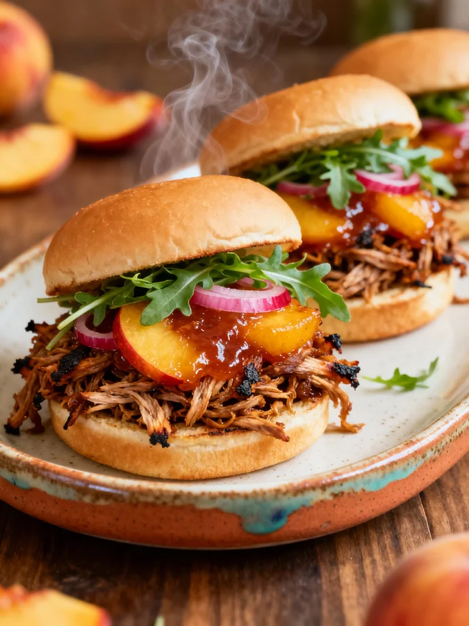 Smoky Bourbon Peach Pulled Pork Sliders Smoky Bourbon Peach Pulled Pork Sliders are the ultimate comfort food, combining tender, juicy pulled pork with a sweet and smoky bourbon peach sauce