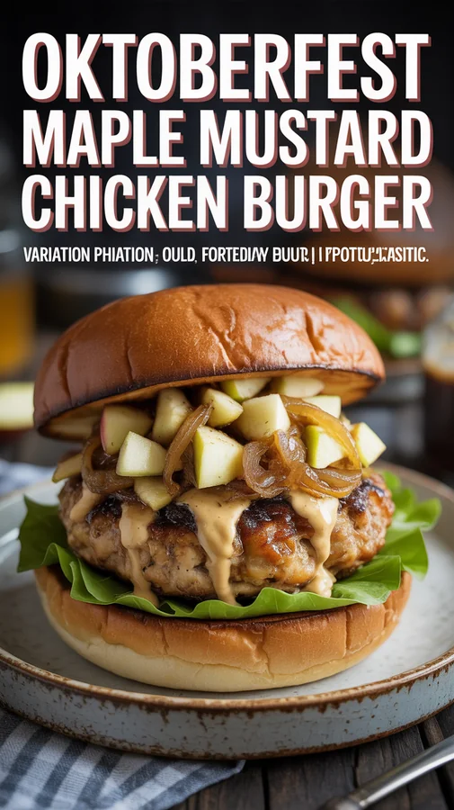 Oktoberfest Maple Mustard Chicken Burger Oktoberfest Maple Mustard Chicken Burger is a delightful twist on the classic chicken burger, infused with the rich flavors of maple syrup and zesty mustard.