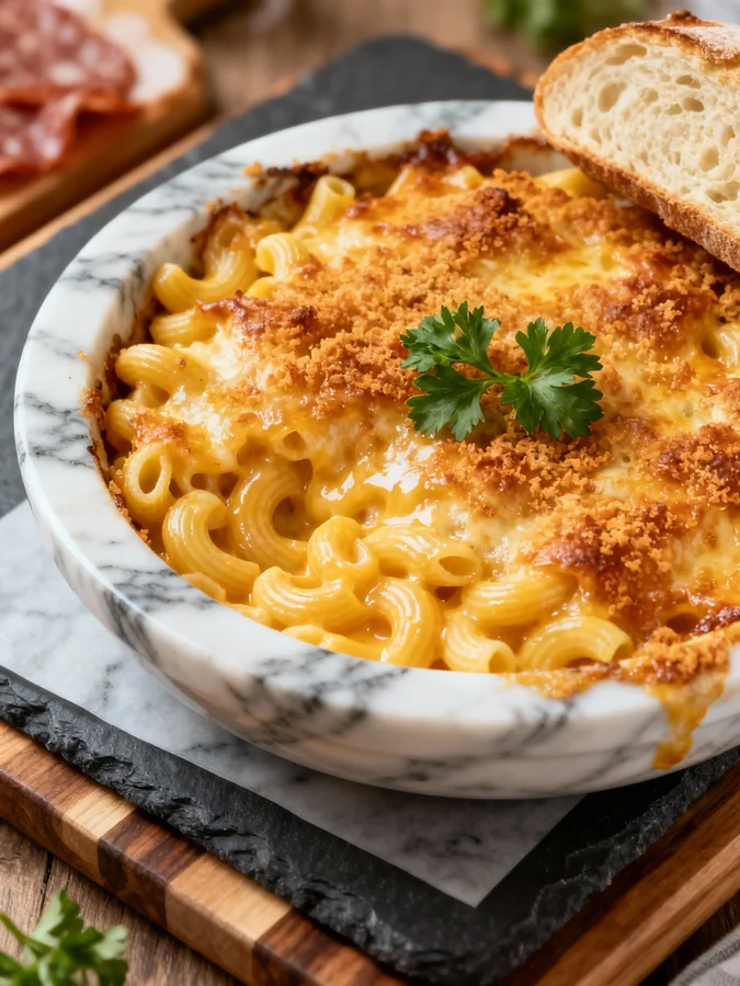 Creamy Homemade Mac and Cheese with Crunchy Topping Nothing warms the heart and soul quite like a bowl of creamy homemade mac and cheese. With its rich, velvety cheese sauce
