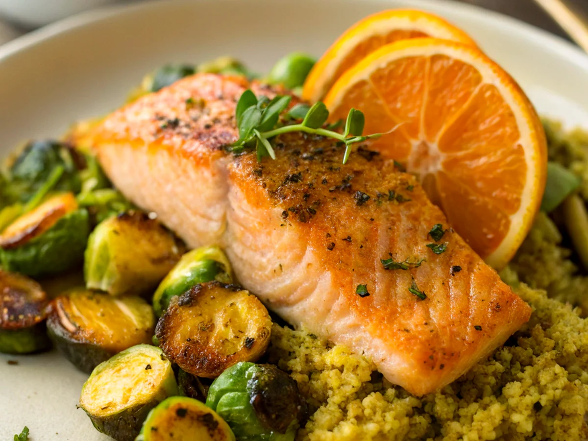 Citrus-Crusted Trout with Miso-Maple Brussels Sprouts & Turmeric Quinoa is not only a feast for the senses but also a powerhouse of nutrition. Trout is an excellent source of omega-3 fatty acids, which are essential for heart health and brain function. It is also rich in high-quality protein, making it a great choice for muscle maintenance and overall wellness.
