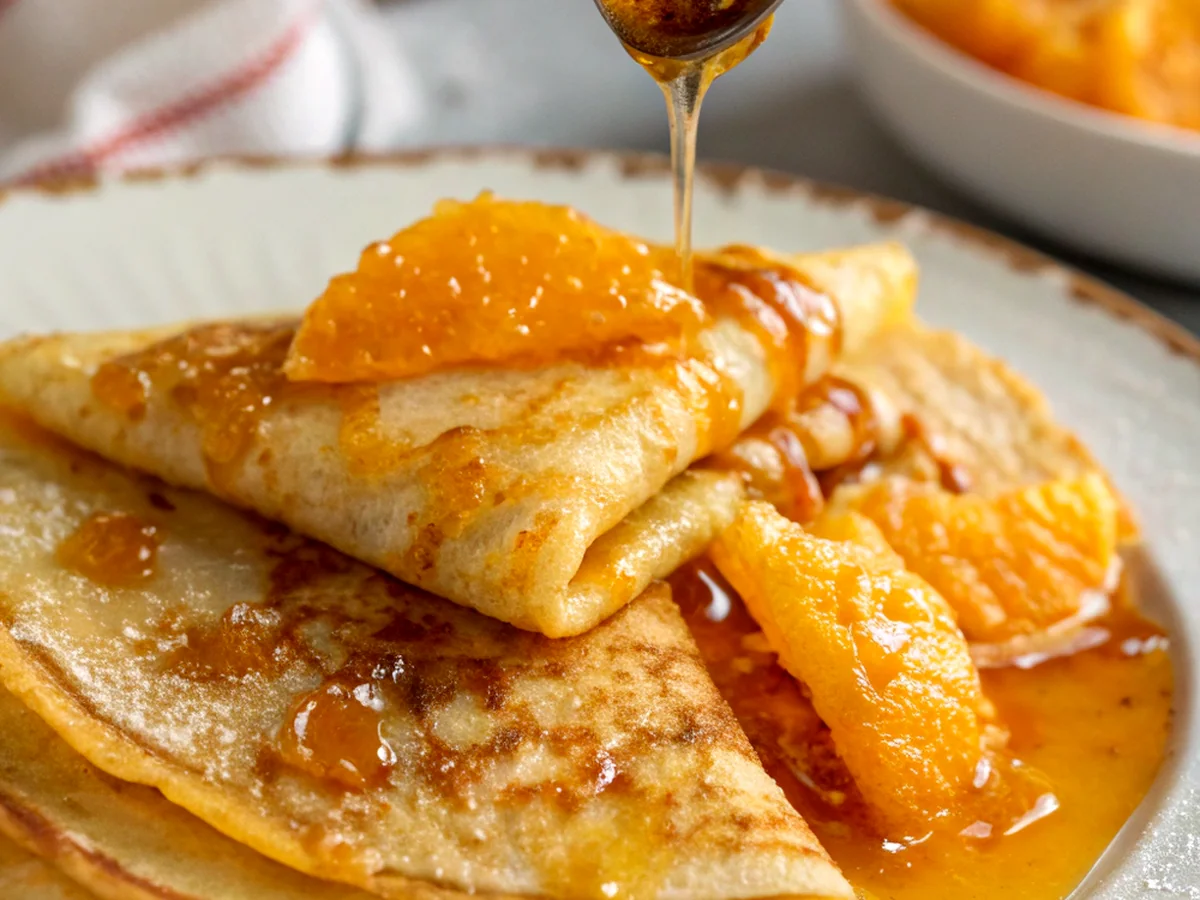 - Ingrédients principaux : Farine, œufs, lait, beurre, sucre, orange (jus et zeste), liqueur (Grand Marnier ou Cointreau).
