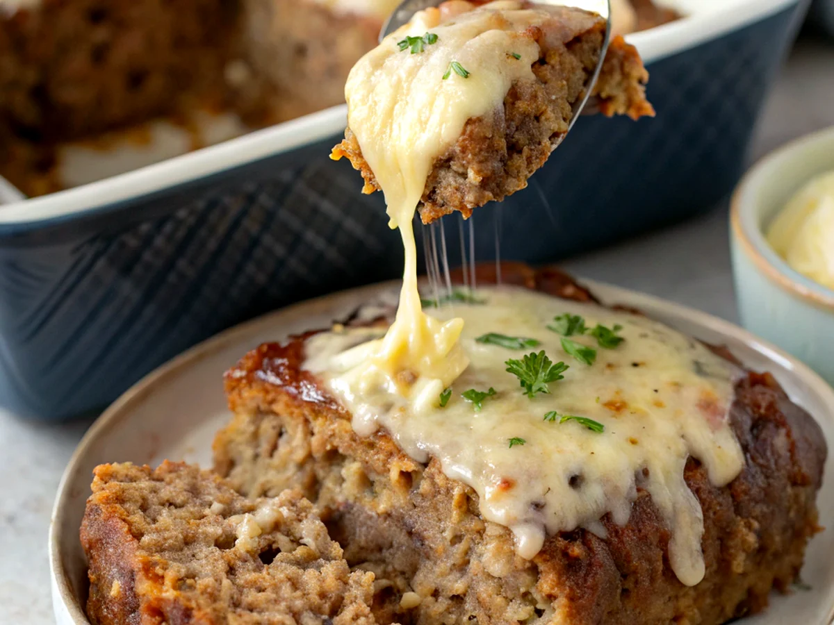 The melted Swiss cheese on top adds an incredible creaminess, perfectly balancing the rich meatiness of the loaf. Aromas of caramelized onions waft through the air as it cooks, beckoning everyone to the table. Each bite is a delightful combination of flavors, with the subtle nuttiness of the Swiss cheese complementing the savory meatloaf perfectly.