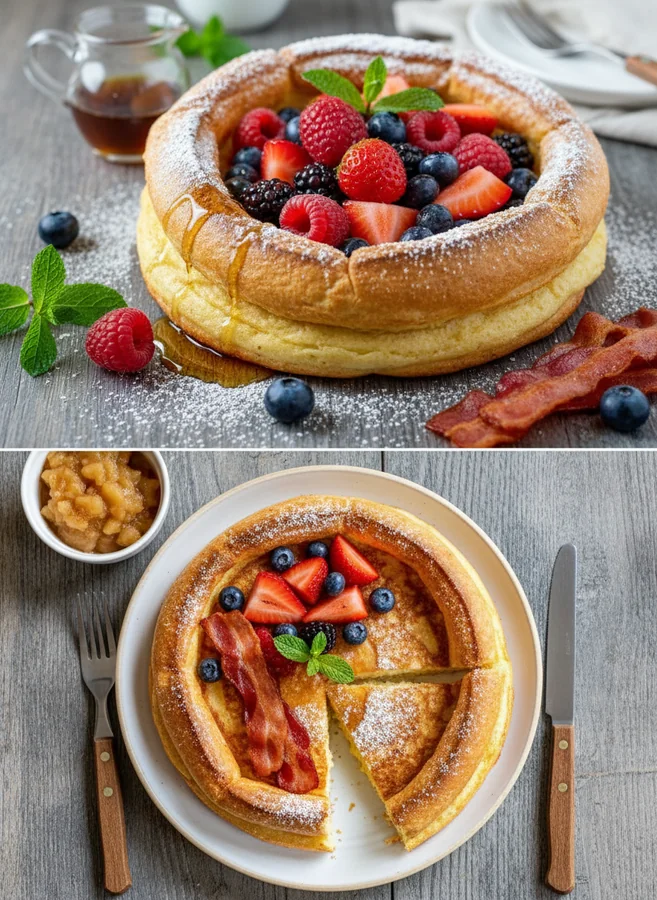 Ja, Sie können den Teig in eine Backform gießen und im Ofen backen, um einen größeren Pfannkuchen zu erhalten, der als „Dutch Baby“ bekannt ist.