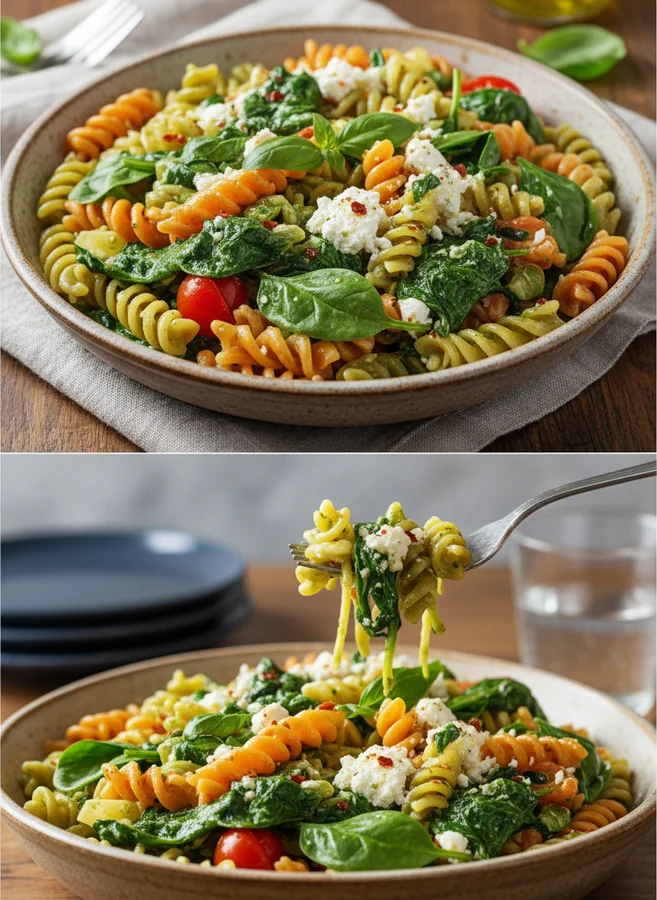 Koche die Pasta in gesalzenem, kochendem Wasser, bis sie al dente ist, reserviere 1 Tasse Nudelwasser und lasse sie dann abtropfen.