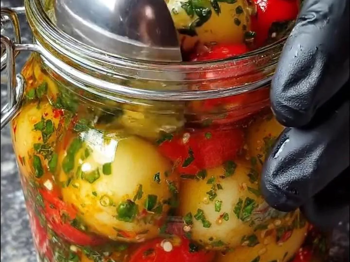 Eingelegte Kartoffeln mit Kräutern und Paprika