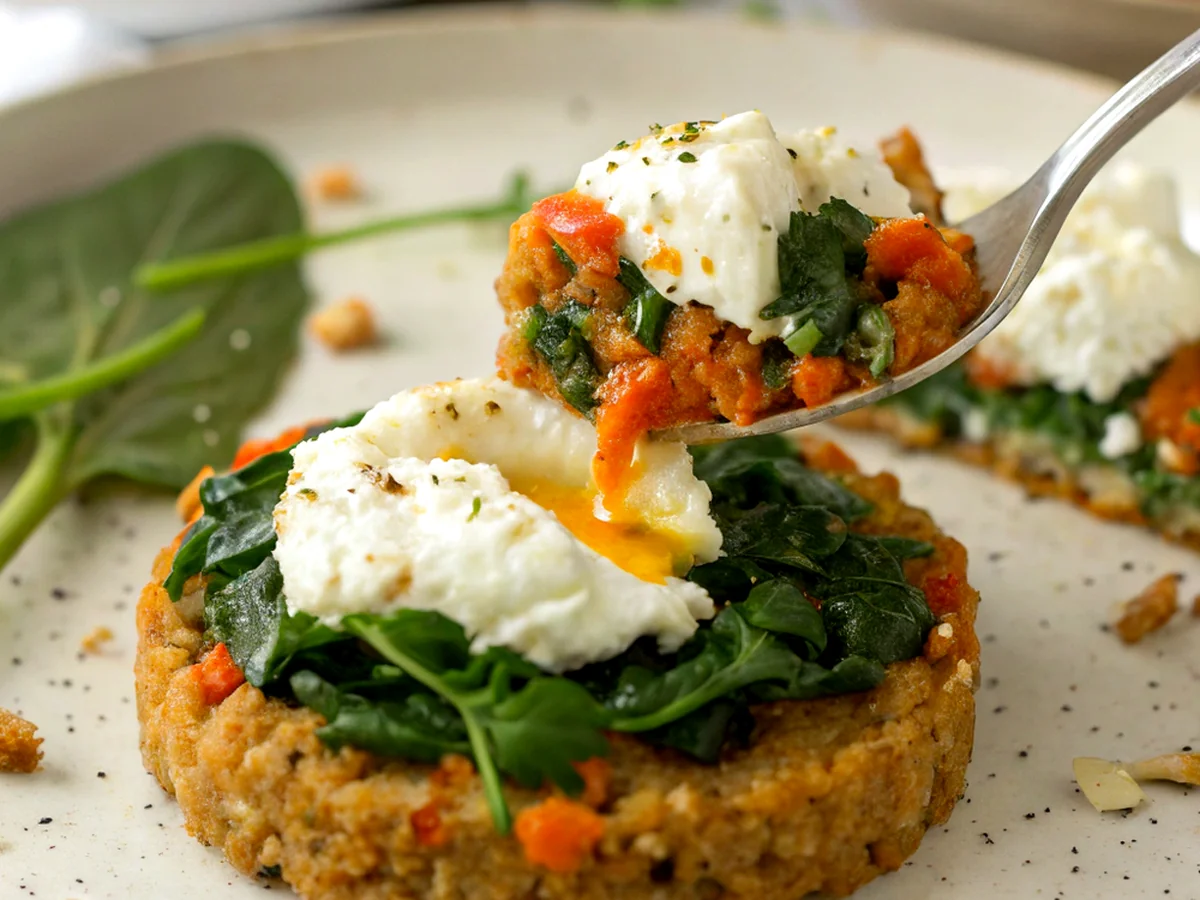 - Ingrédients principaux : Lentilles corail, épinards frais, fromage de chèvre, oignon, œuf, épices.