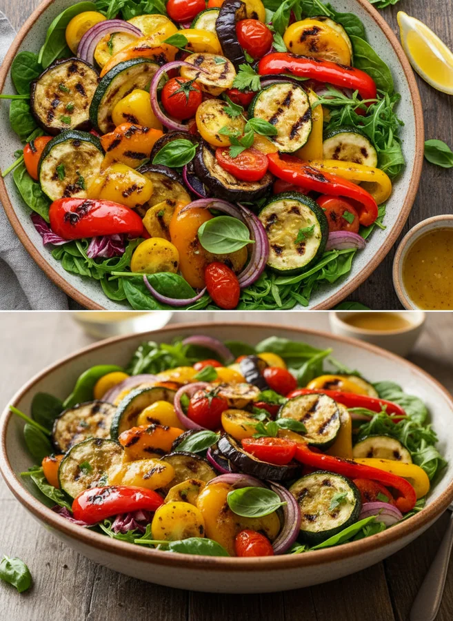 6. Servieren: Der Grillsalat kann warm oder kalt serviert werden und ist sofort bereit, genossen zu werden.