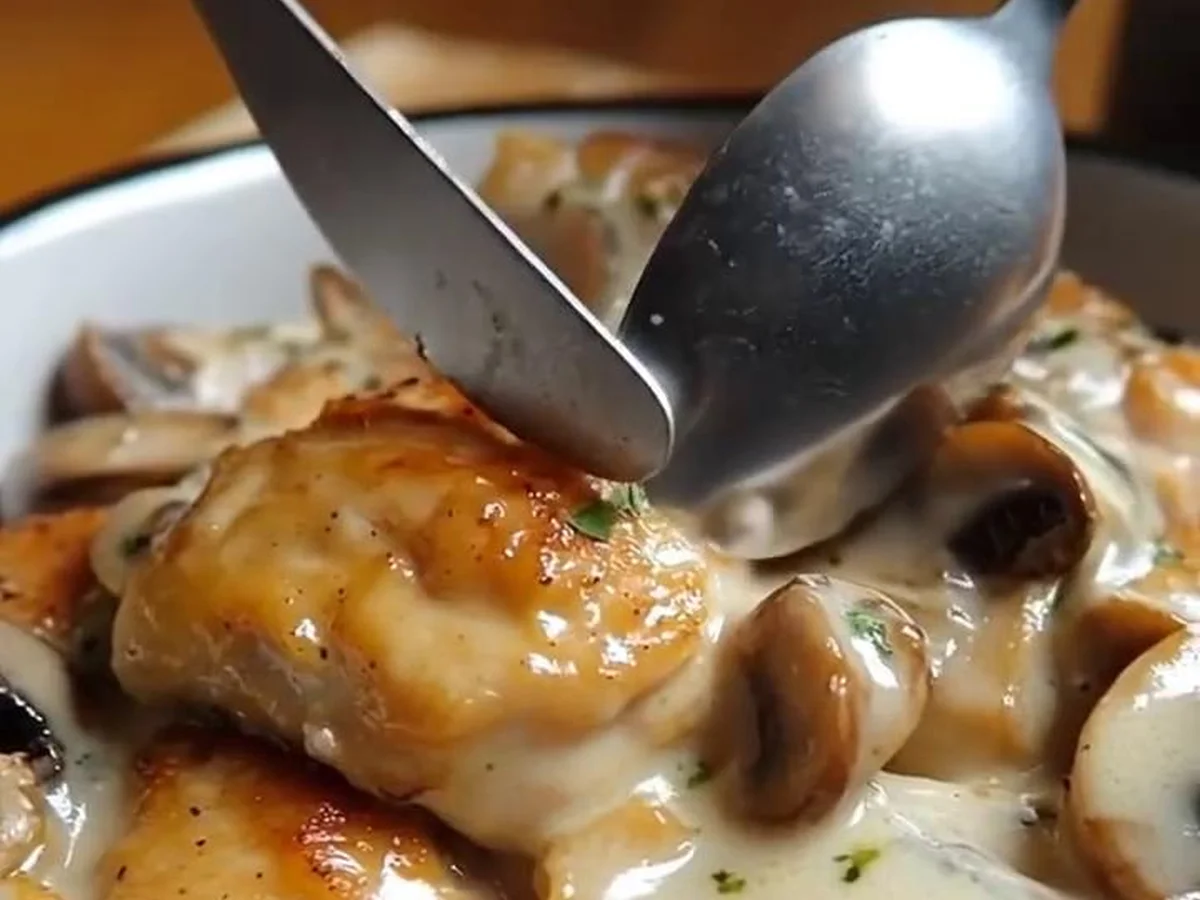 Genießen Sie Ihr köstliches hausgemachtes Hähnchen in Weißer Saucen mit Champignons !