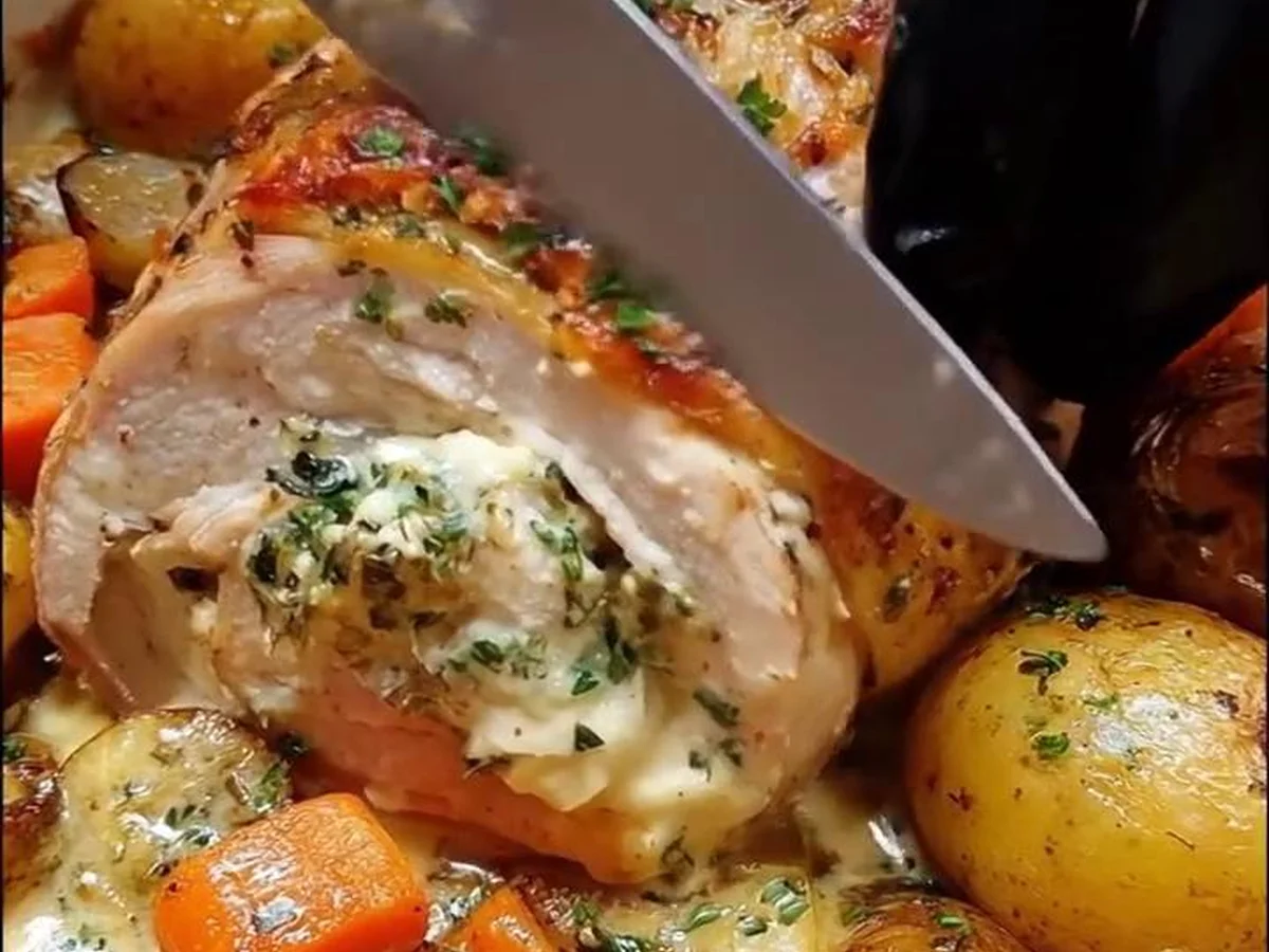 Genießen Sie Ihr köstliches hausgemachtes Hähnchenbrust gefüllt mit cremiger Sauce!