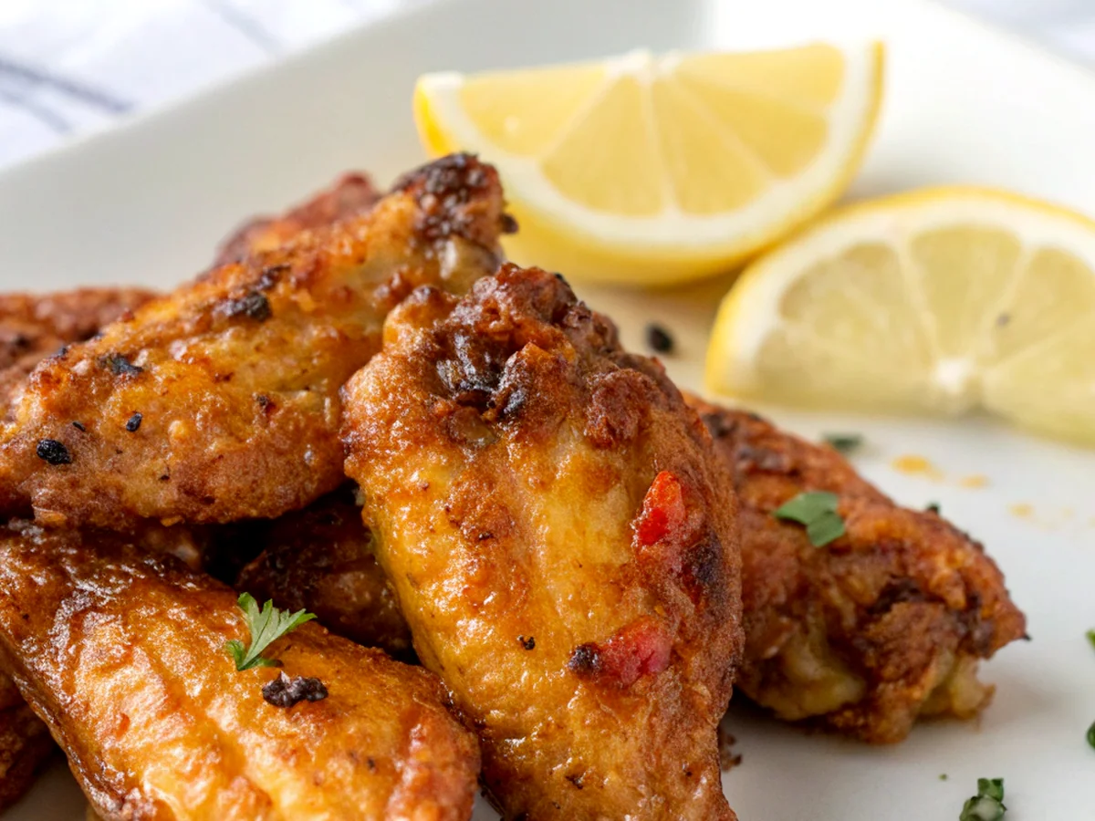 8. Serve: Transfer the coated wings to a serving platter and garnish with fresh parsley or lemon wedges, if desired.