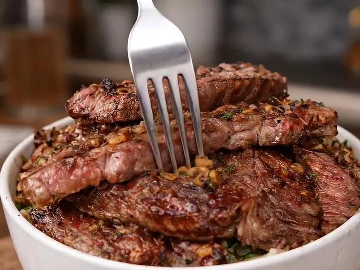 - Kann ich das Gericht vegan zubereiten? Ja, indem Sie das Steak durch Tofu ersetzen und vegane Butter sowie eine pflanzliche Brühe nutzen.