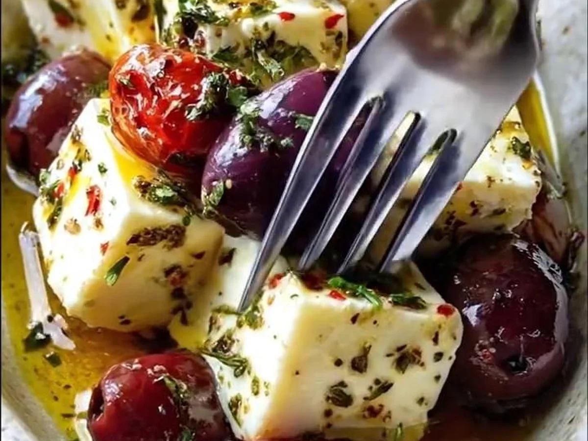 Genießen Sie Ihr köstliches hausgemachtes Marinierter Käse mit Oliven !