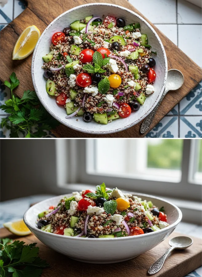 Serviervorschläge für Mediterraner Quinoa-Salat mit Feta und Oliven:
