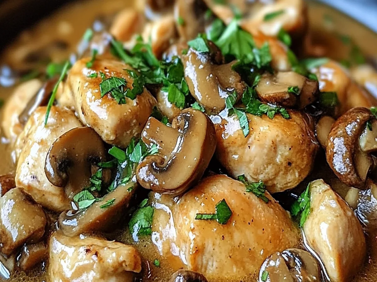 • Main ingredients: Chicken breasts, mushrooms, heavy cream, chicken broth, garlic, and herbs.