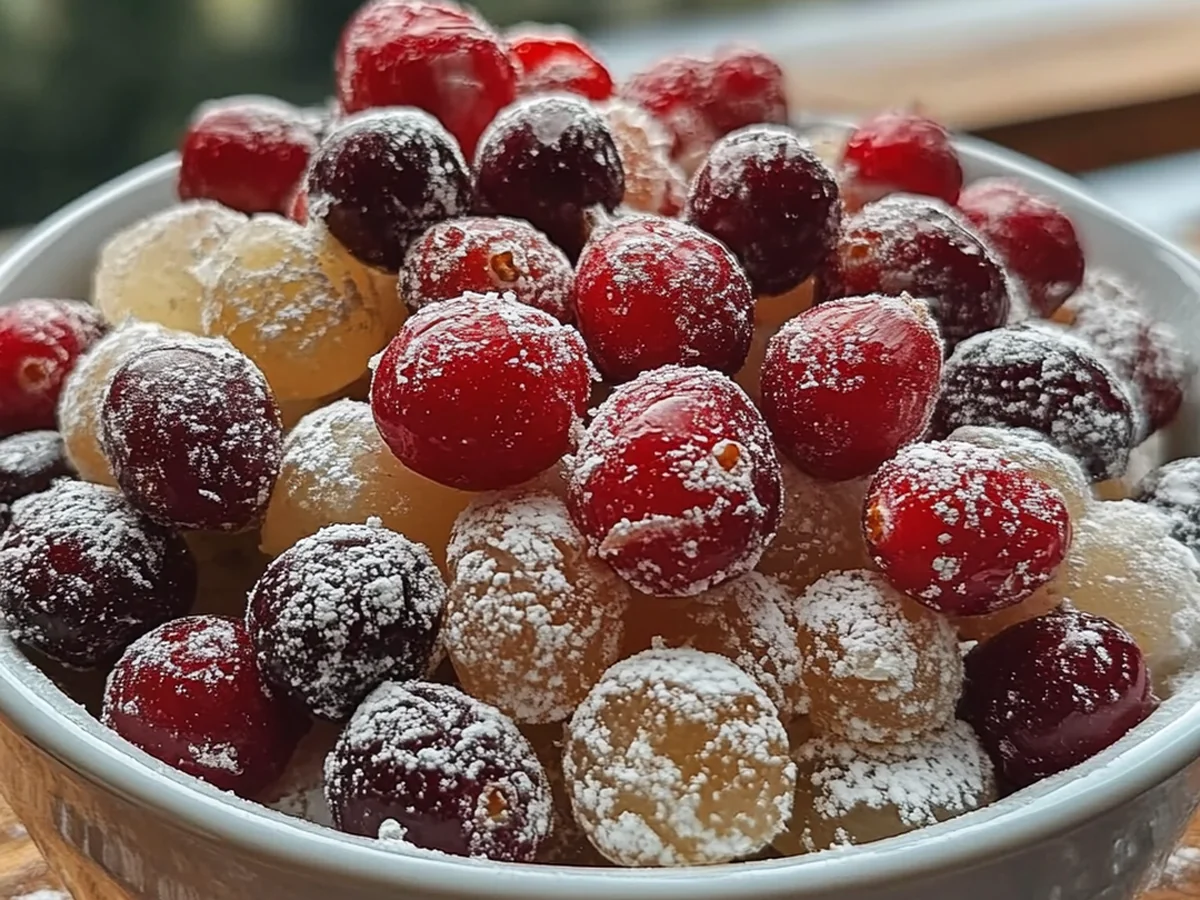 The concept of candied fruits dates back centuries, as cultures around the world have sought ways to preserve seasonal fruits. The introduction of sugar to the candying process not only prolongs the shelf life of these fruits but also enhances their natural flavors. In this recipe, the tartness of cranberries is beautifully balanced by the sweetness of sugar, the brightness of orange, and the warmth of vanilla, creating an exquisite treat that celebrates all that is festive.