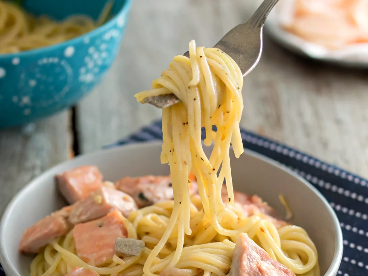 • Ingrédients principaux: Pâtes (de préférence des tagliatelles ou des linguines), saumon frais, saumon fumé, crème fraîche, oignons, ail, aneth, citron.