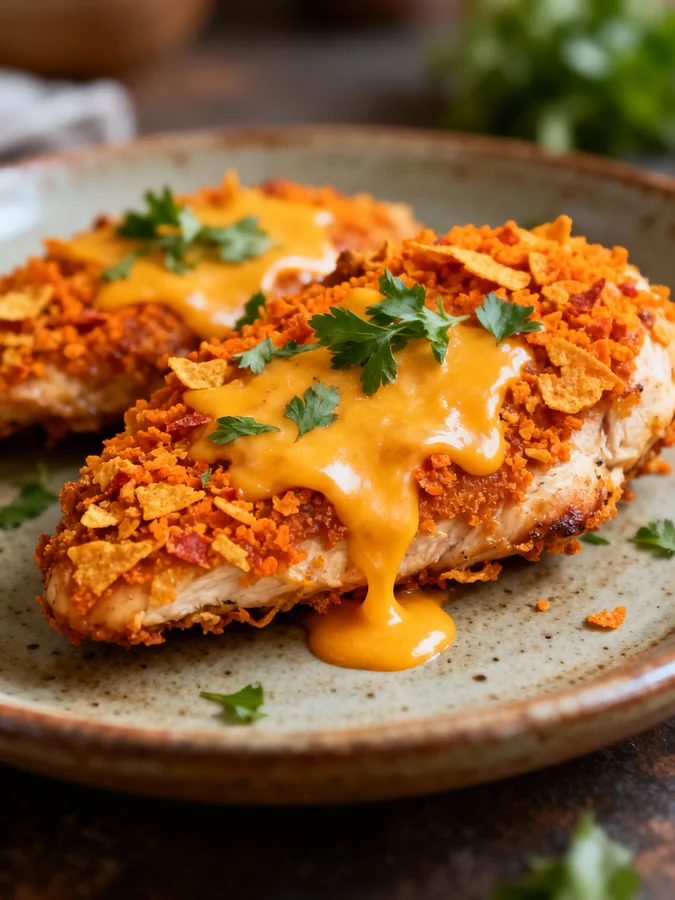 Ce plat se distingue par un mélange de saveurs et de textures qui ravissent les sens. La panure à base de Doritos offre une croûte croustillante et salée, tandis que la viande de poulet est tendre et juteuse. L’ail apporte une note aromatique intense, équilibrée par la richesse du parmesan. Ensemble, ces éléments créent un mariage harmonieux qui fera chavirer les amateurs de bonne cuisine. Pour une autre expérience gustative, vous pouvez essayer notre recette de Black Forest Cheesecake, qui offre également une belle panure croustillante.