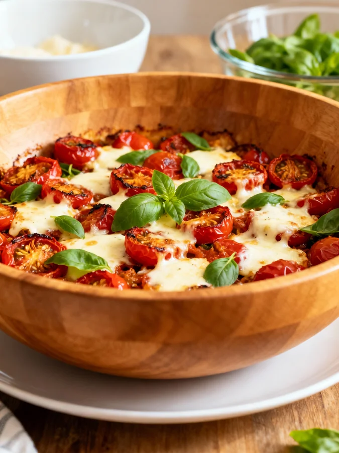 La Salade Caprese de tomates rôties au four est non seulement délicieuse, mais elle est aussi riche en nutriments. Les tomates sont une excellente source de vitamines C et K, ainsi que de lycopène, un antioxydant puissant qui peut aider à réduire le risque de maladies cardiovasculaires. La mozzarella apporte des protéines et du calcium, tandis que le basilic apporte des arômes frais et des antioxydants. De plus, l’huile d’olive, reconnue pour ses bienfaits sur la santé, contribue à la santé cardiaque grâce à ses graisses monoinsaturées.