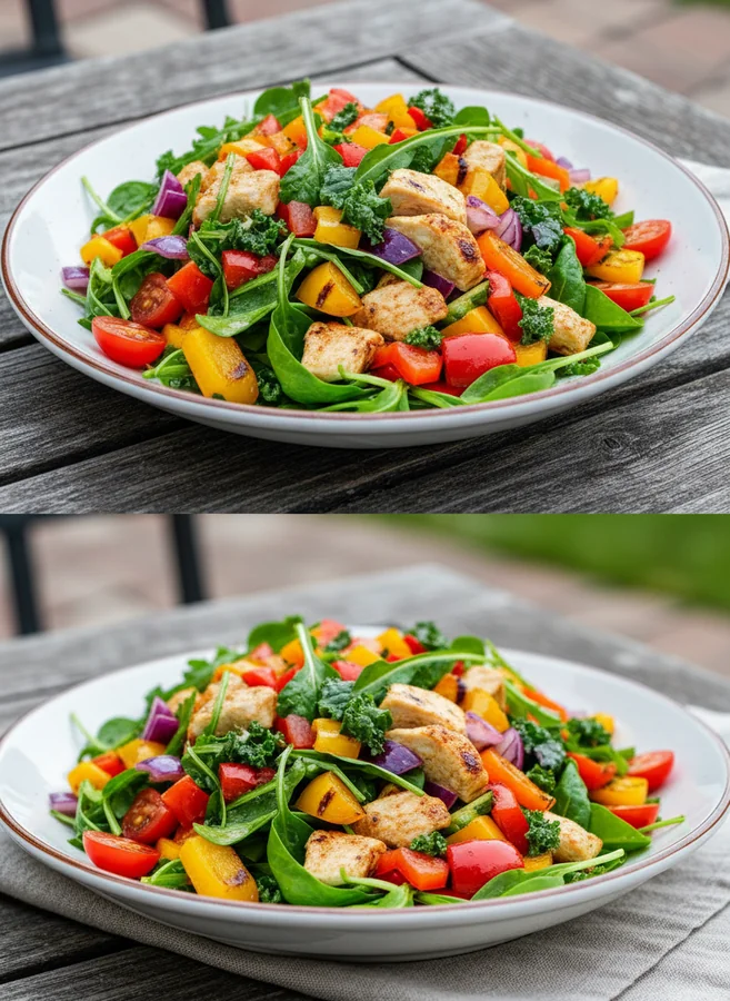 - Hauptzutaten: Frisches Gemüse, Grillgemüse, Protein (z.B. Hähnchen, Tofu), Dressing