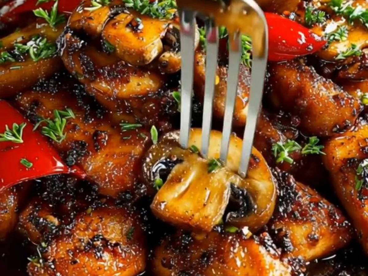 Genießen Sie Ihr köstliches hausgemachtes Schwarzer Pfeffer Hühnchen mit Pilzen !