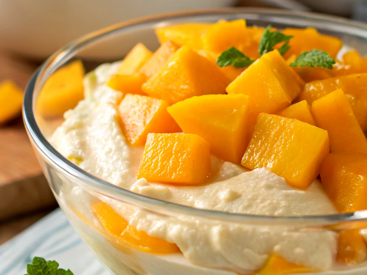 5. Blend Until Smooth: Using a hand mixer or a spatula, blend the ingredients until the mixture is smooth and well combined. You can leave some small chunks of mango for texture if desired.