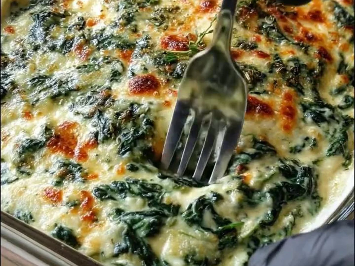 Genießen Sie Ihr köstliches hausgemachtes Spinatsalat überbacken mit Sahne !