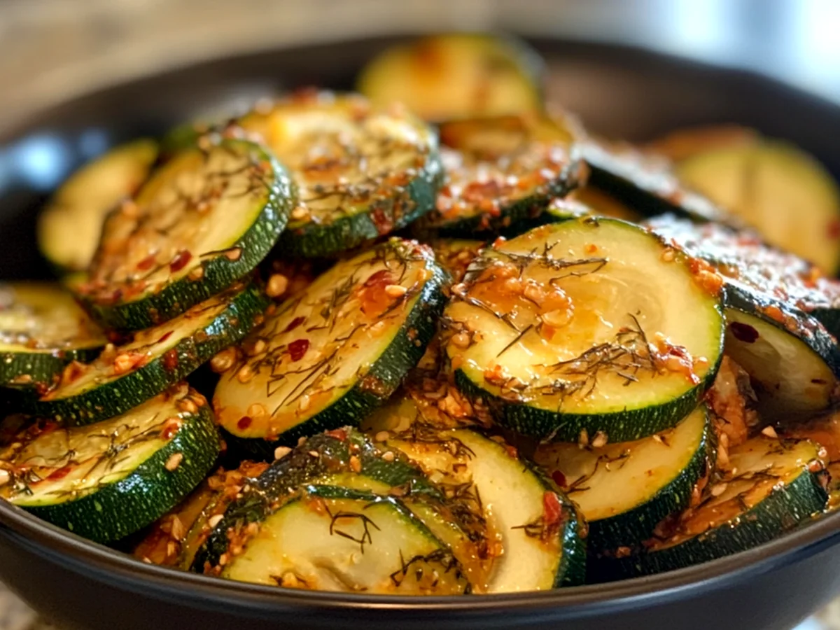 Zesty Zucchini Pickles with Spicy Dill Kick If you’re looking for a unique and delicious way to preserve the summer bounty of zucchini, look no further than Zesty Zucchini Pickles