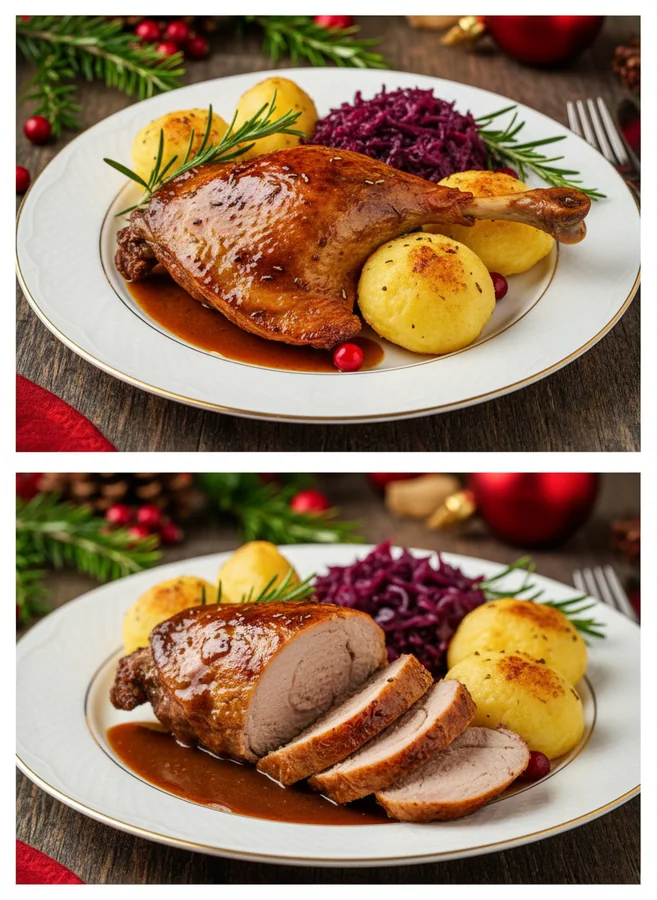 - Hauptzutaten: Zu den Hauptzutaten eines typischen Weihnachtsessens gehören Geflügel oder Wild, saisonales Gemüse, Kartoffeln, Gewürze und aromatische Kräuter.